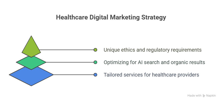 A specialized healthcare digital marketing agency India offers a range of interconnected services designed to meet the evolving needs of today’s providers. These services are now being optimized for both AI search visibility and organic SEO, a dual-track strategy that’s becoming essential in 2025: